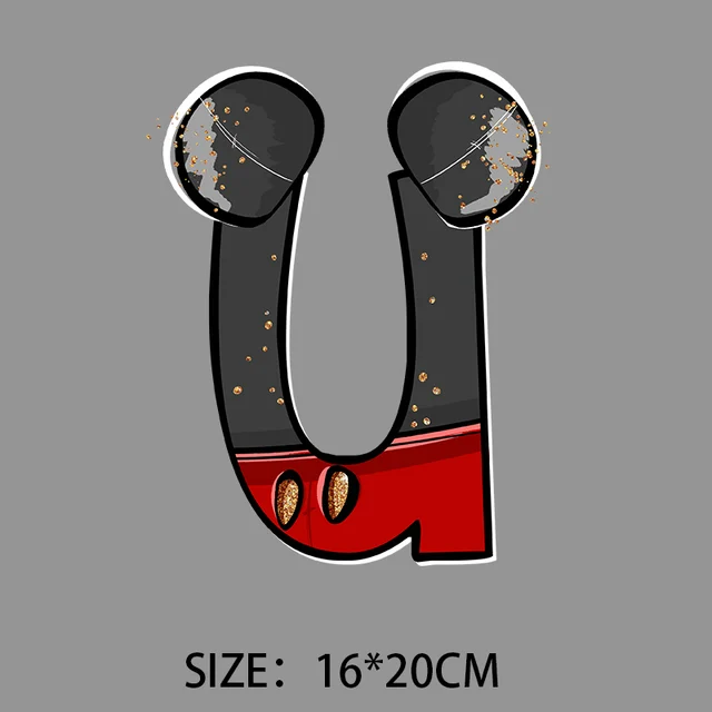 Disney Cartoon 26 English Letters Mickey Ear Pattern On Transfer For Clothing Stickers Printed Decoration Washable Diy Appliques Patches Aliexpress